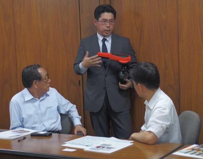 ↑会長と社長がバタフライバルブの流れ方向の説明を受けている様子です。